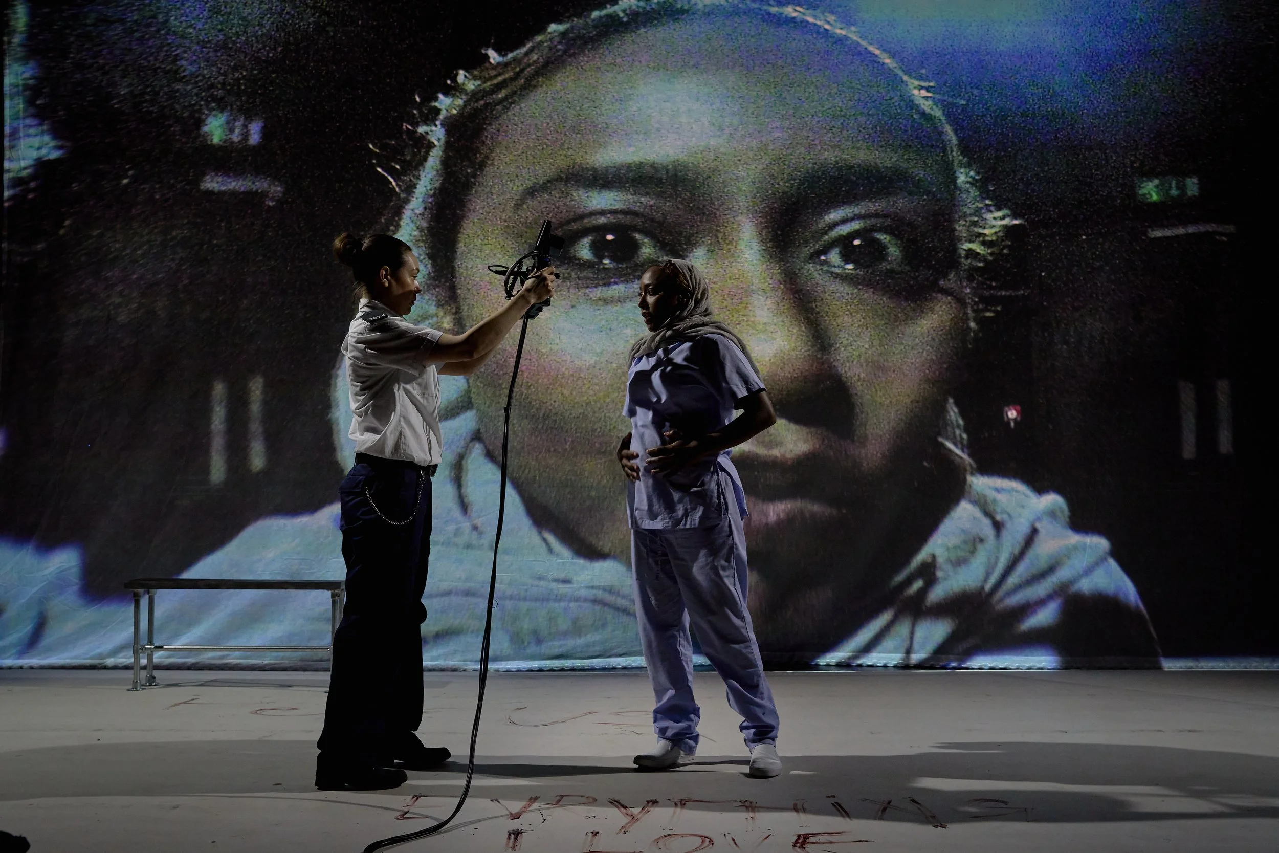 BÉZNĂ Theatre (UK) & Giuvlipen (Romania) / / How to Break Out of a Detention Centre / 2023 / Riverside Studios, London / Photo credit: Héctor Manchego